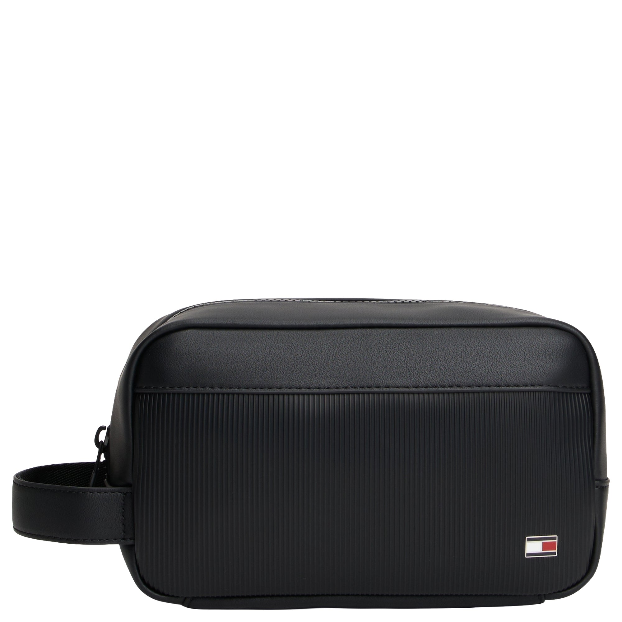 Il beauty case Tommy Hilfiger TH Flag in nero è un compagno pratico per i viaggi e la vita quotidiana, che convince con il suo design elegante.