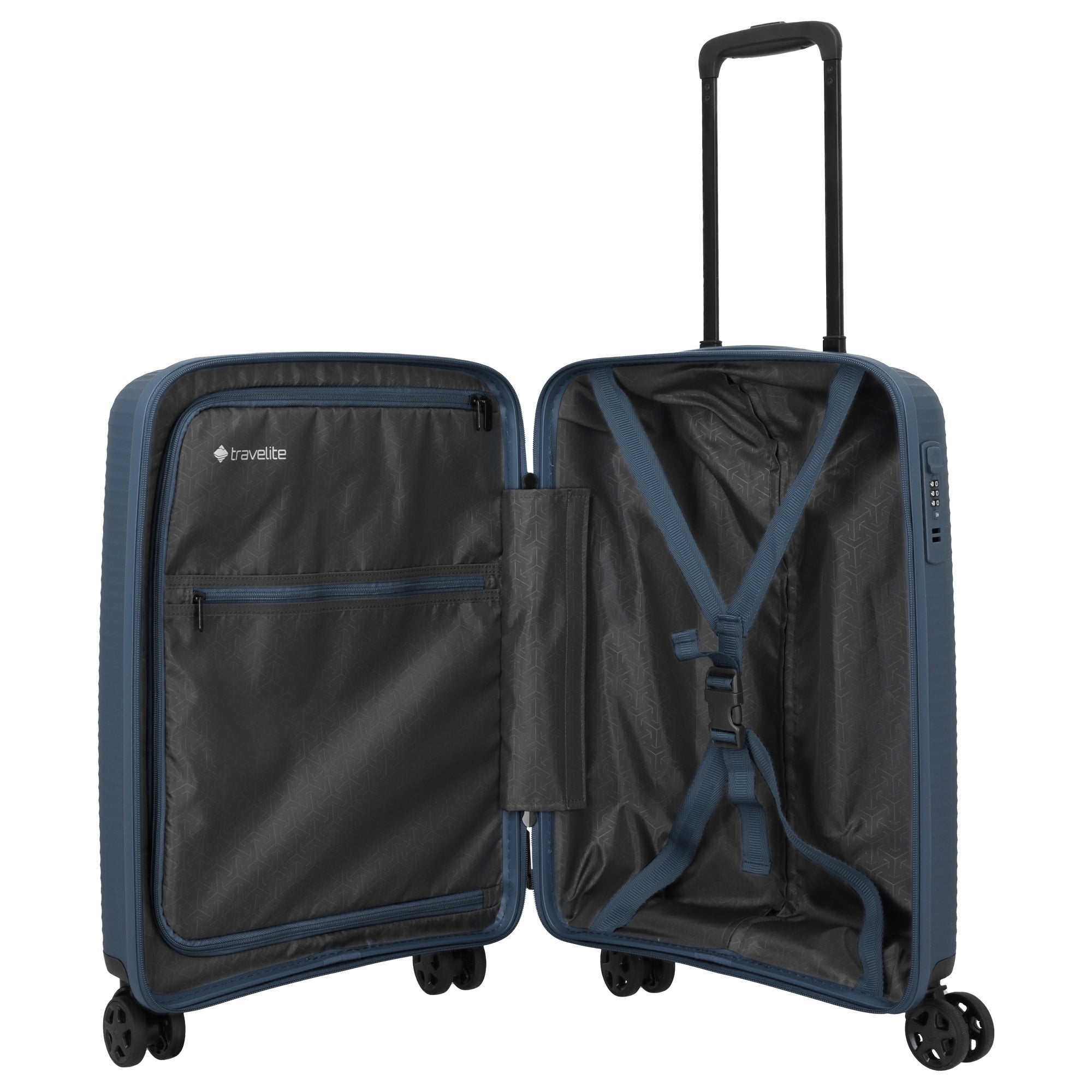 Con un volume di 39 l, il trolley cabina Travelite color navy è un compagno affidabile per brevi viaggi e trasferte di lavoro.