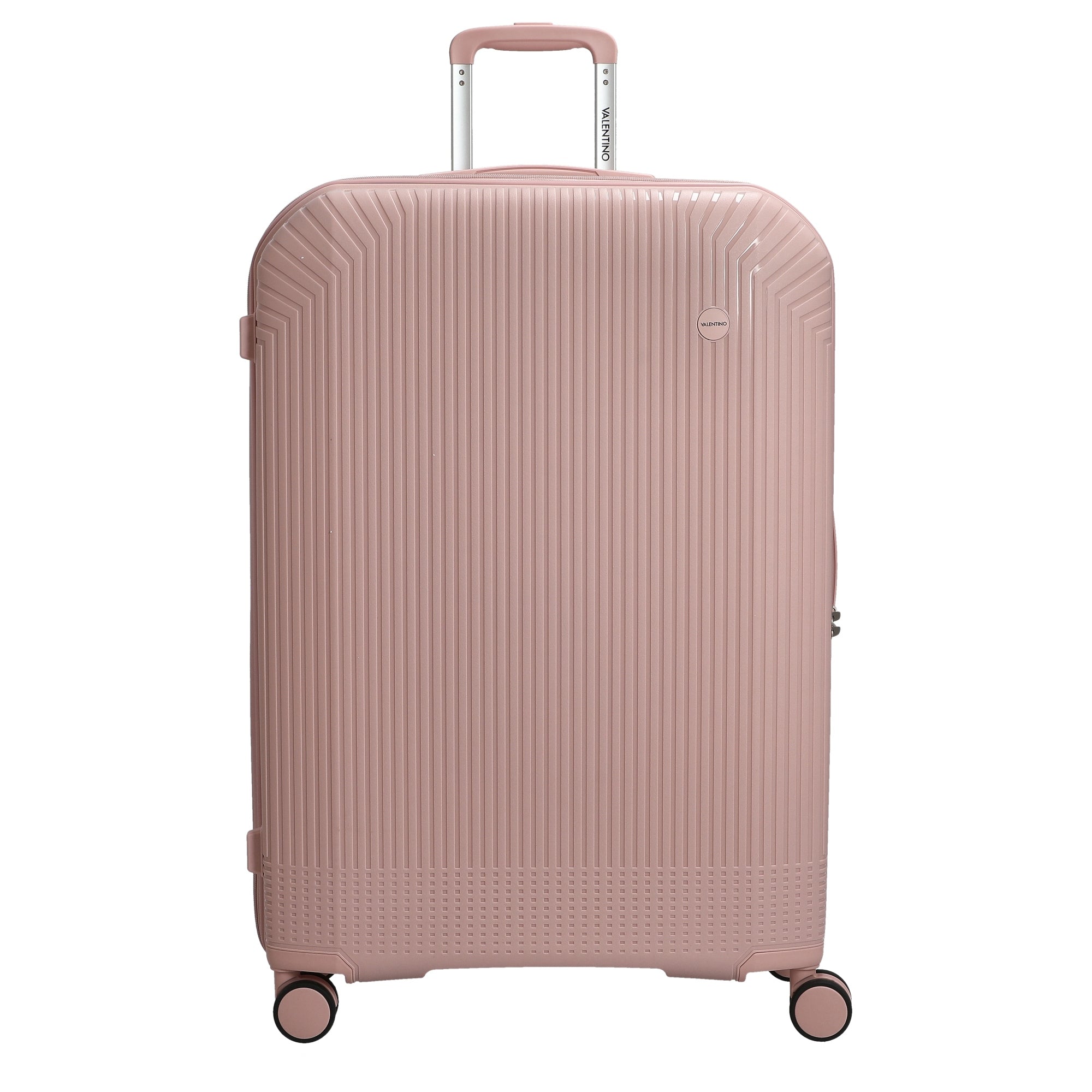 Scoprite il trolley Valentino Bags Wood Carry on a 4 ruote in un elegante tono cipria. Questo trolley stiloso unisce funzionalità a un tocco di lusso ed è il compagno ideale per i vostri viaggi.